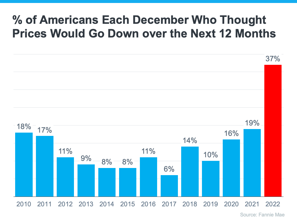 These forecasts put doubt in the minds of many consumers about the strength of the residential real estate market. Evidence of this can be seen in the December Consumer Confidence Survey from Fannie Mae. It showed a larger percentage of Americans believed home prices would fall over the next 12 months than in any other December in the history of the survey (see graph below). That caused people to hesitate about their homebuying or selling plans as we entered the new year.